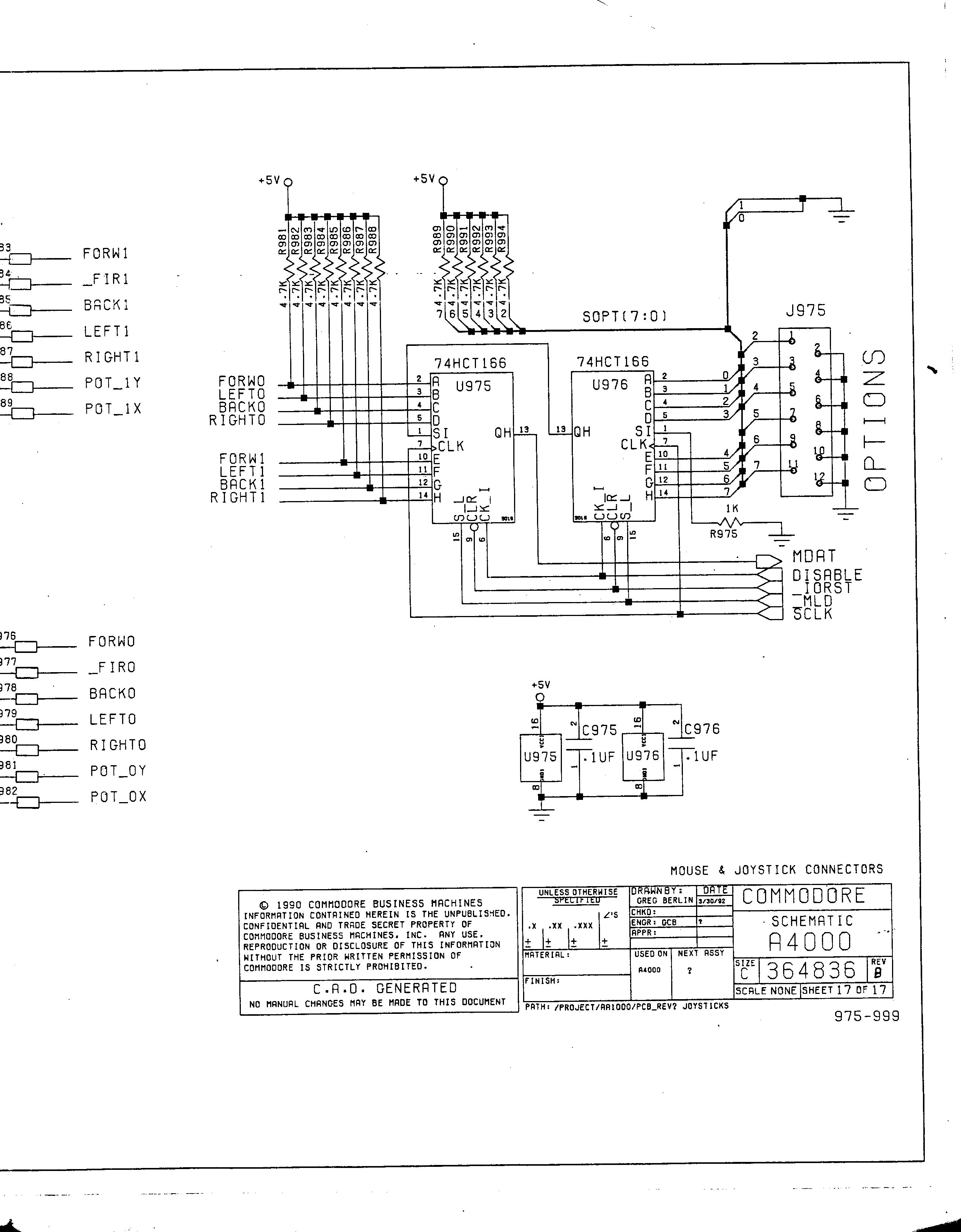 Note that the left mouse button (fire) signal on pin 6 of the D-range connectors is handled by one of the CIAs (U350 in the A4000D), while the right mouse button (fire 2 or paddle Y) on pin 9 is a