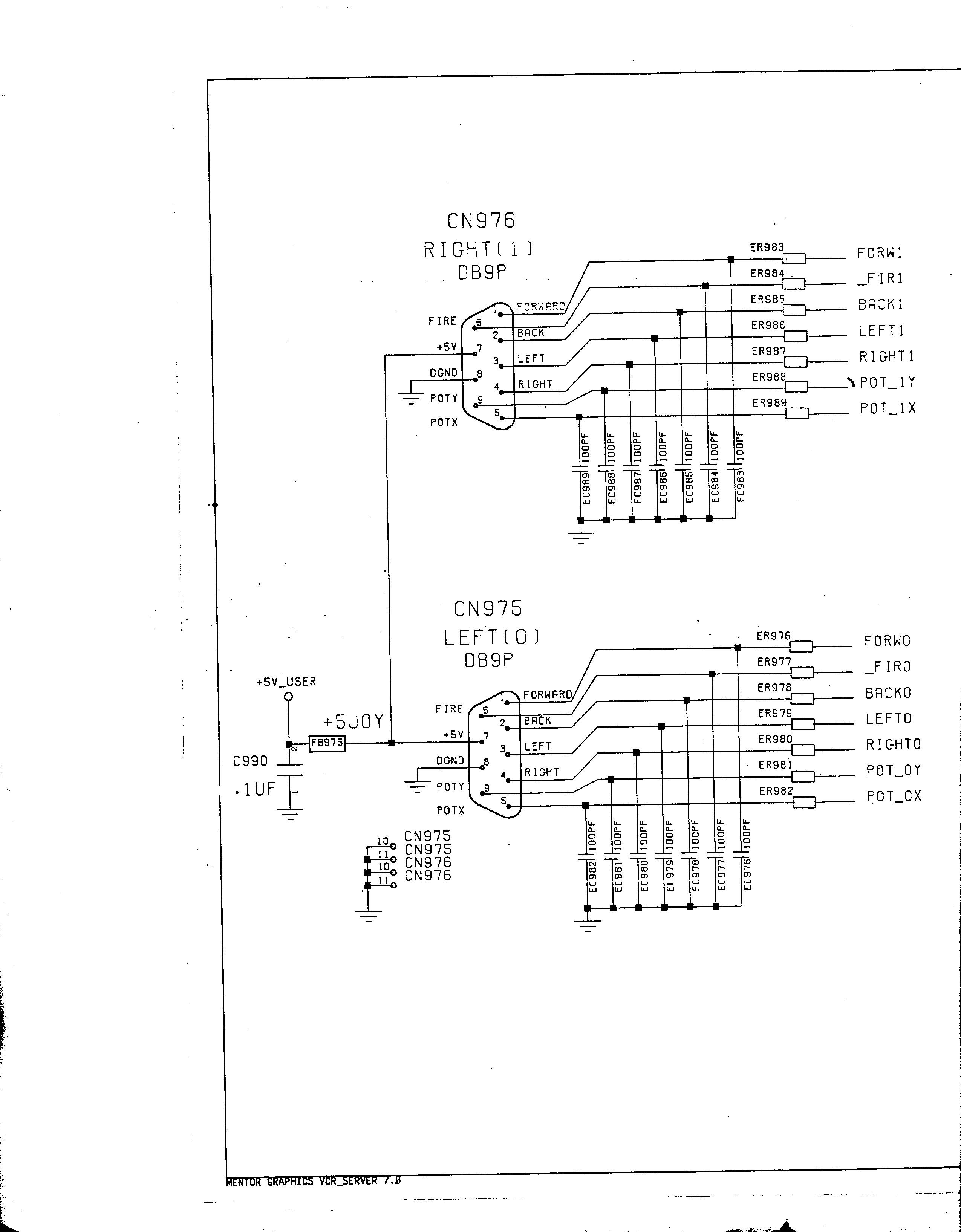 Note that the left mouse button (fire) signal on pin 6 of the D-range connectors is handled by one of the CIAs (U350 in the A4000D), while the right mouse button (fire 2 or paddle Y) on pin 9 is a